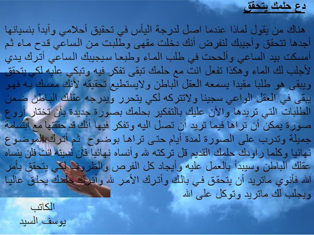 دع حلمك يتحقق صور وكلام يوسف السيد وشكرا لكم |
